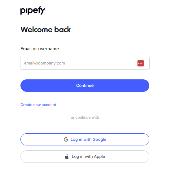 On the Pipefy login page , enter your email address and password to log in.