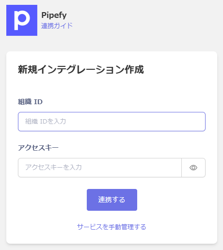 Enter the organization ID and access key obtained in the previous step, and click Connect .