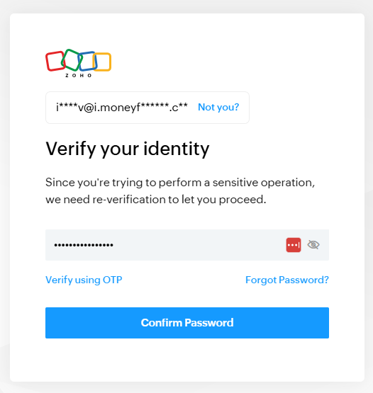 On the Zoho Books login page , enter your email address and password to log in.