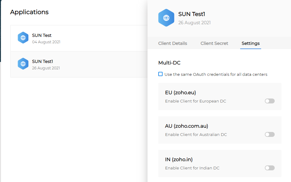 Settings > Check Use the same Oauth credentials for all data centers .