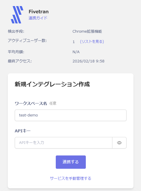 Enter your desired workspace name and the API key obtained in the previous step, then click Connect .
