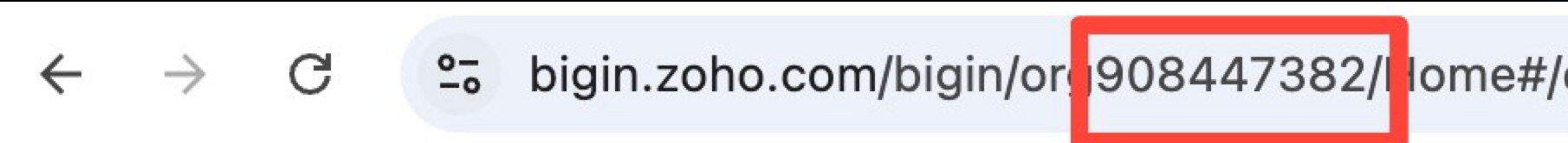 Bigin by Zoho CRMログイン後、URLを確認します。orgの後ろの数字が組織IDです。