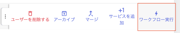 - ディレクトリ一覧で対象者の右側「︙(三点リーダー)」から、[ワークフロー実行]をクリックします。
