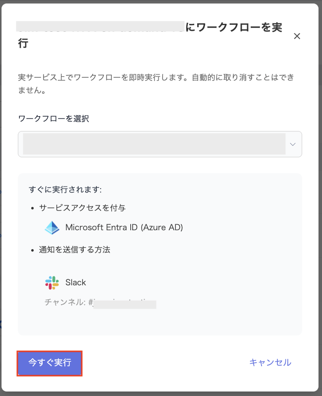 ※ワークフローは即時実行され、取り消しできません。内容を確認の上、実行してください。
