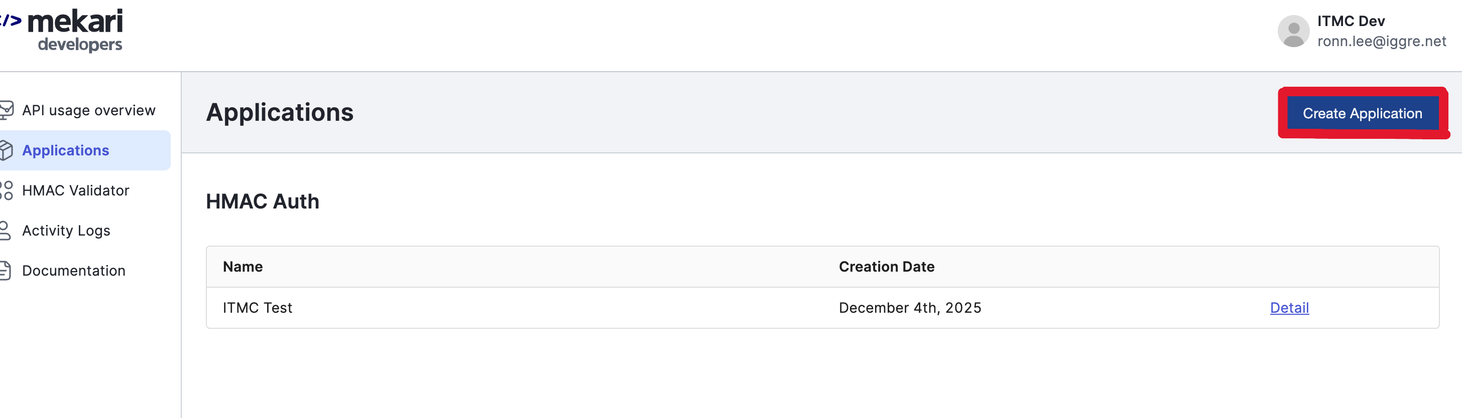 Mekari Talentaにログイン後、Applications > Create Application をクリックします。