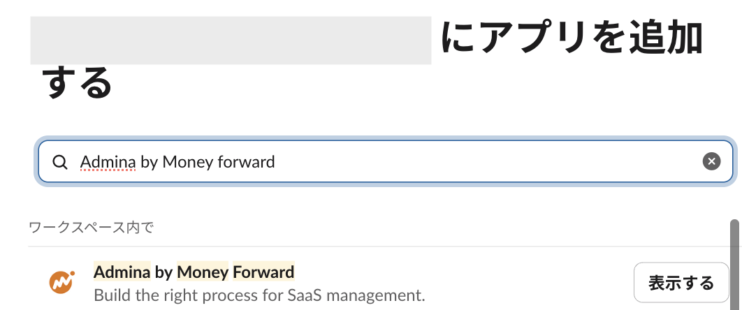 - 「にアプリを追加する」画面で「Admina by Money forward」を検索して