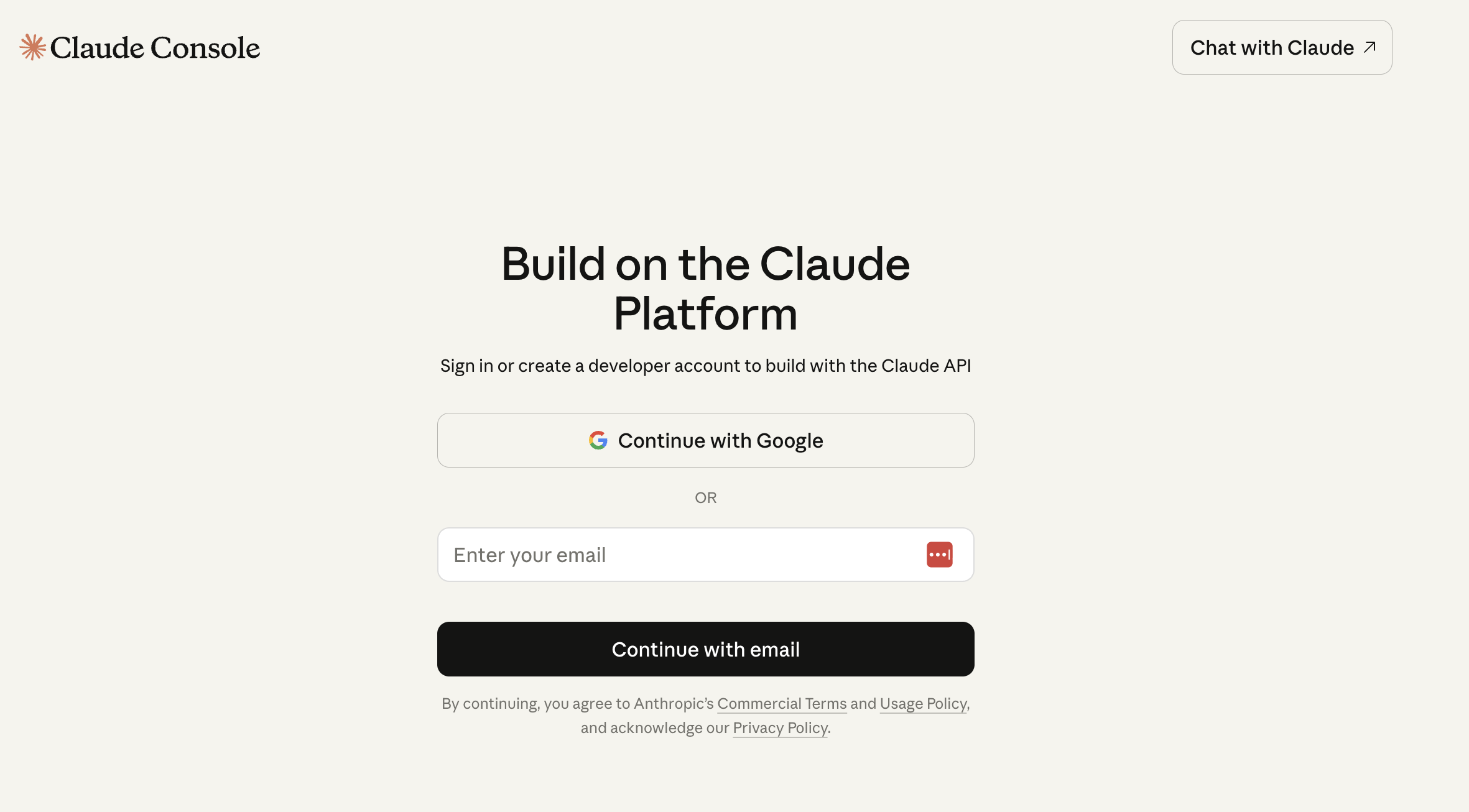 A. 「Claude.ai」の管理画面をご確認いただいている可能性がございます。Claude Consoleのログインページをご確認ください。
