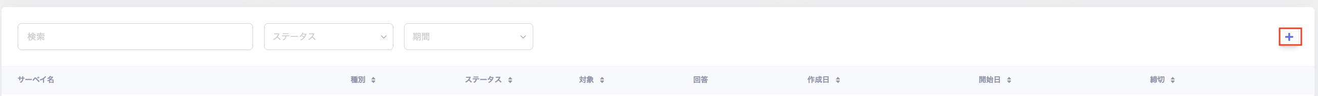 - サーベイ >「サーベイ」画面右上の[+]をクリックします。