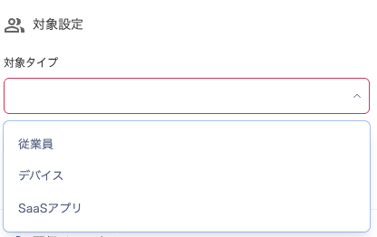 - 次に、右側「対象設定」で「対象タイプ」をプルダウンから選択します。
