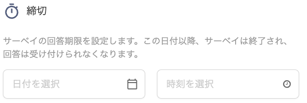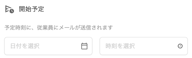 - 「開始予定」画面でサーベイの開始予定日時を設定します。日付と時刻を選択します。