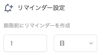 - 「リマインダー設定」画面でサーベイ回答期限前のリマインダーを設定します。数値とプルダウン「時間/日/週」から選択して設定します。