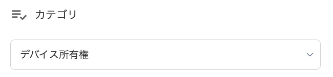 - 「カテゴリ」画面でサーベイのカテゴリを設定します。カテゴリはプルダウン「デバイス所有権/SaaS使用状況/SaaSフィードバック/ライセンス」から選択します。