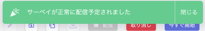 - 「サーベイが正常に配信予定されました」と表示され、指定した時刻にサーベイが配信されます。