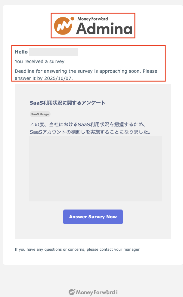 回答者側にはリマインダーで設定した期日になると、以下メールが届きます。