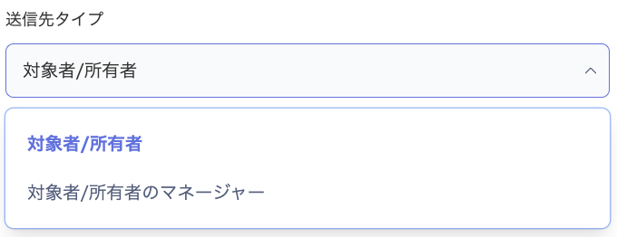 - 送信先タイプ「対象者/対象者のマネージャー」をプルダウンから選択します。