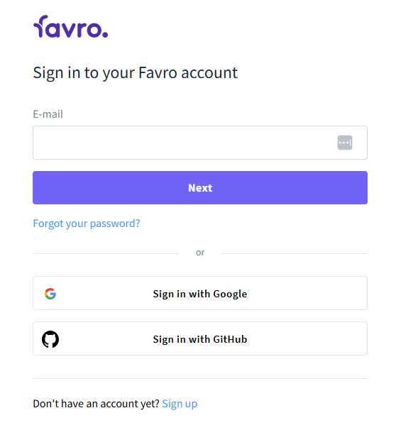 Favroログインページにて、メールアドレス・パスワードを入力し、ログインします。