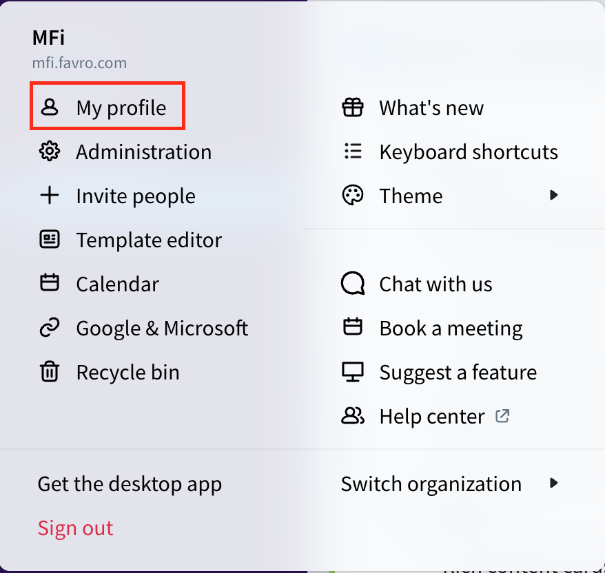 メニューから My profile をクリックします。