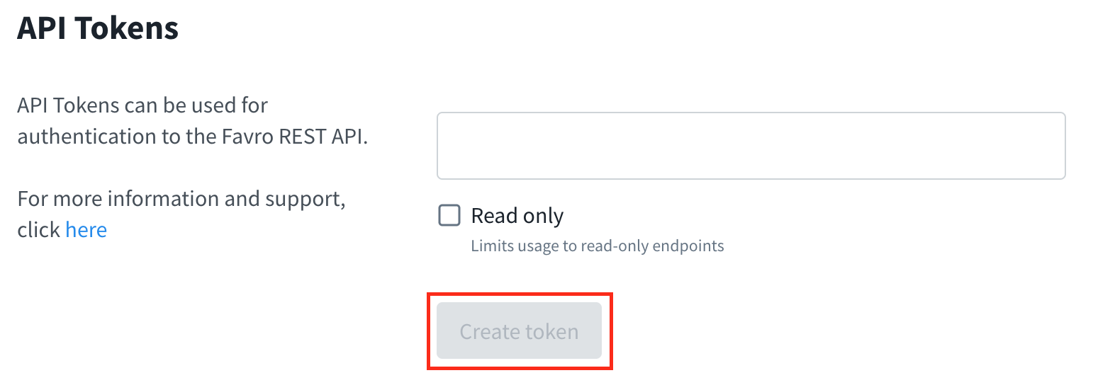 APIトークンの名前を入力し、Create token をクリックします。