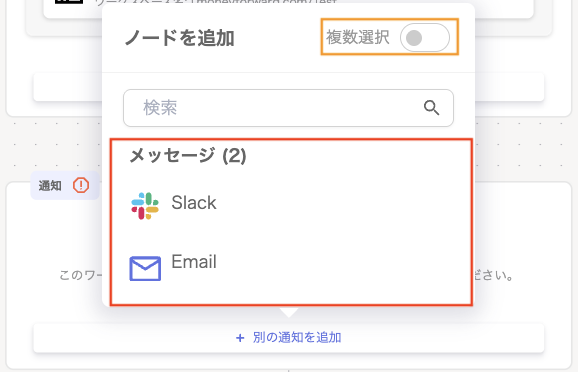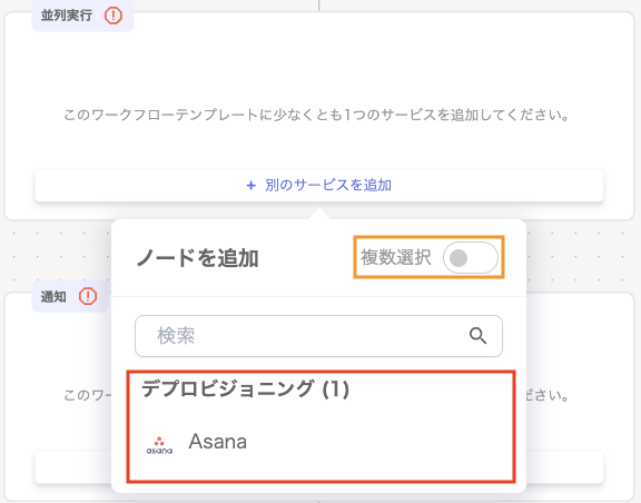 複数のサービスをワークフローに設定する場合、「複数選択」をONにします。
