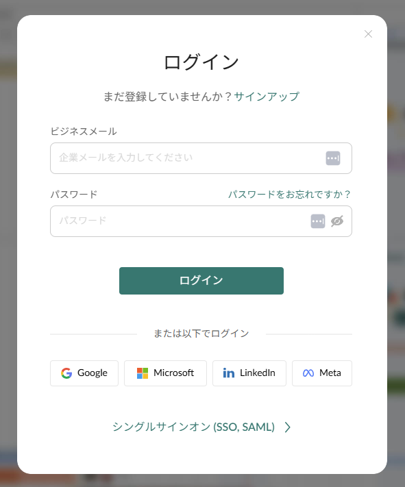 Ganttproログインページにて、メールアドレス・パスワードを入力し、ログインします。