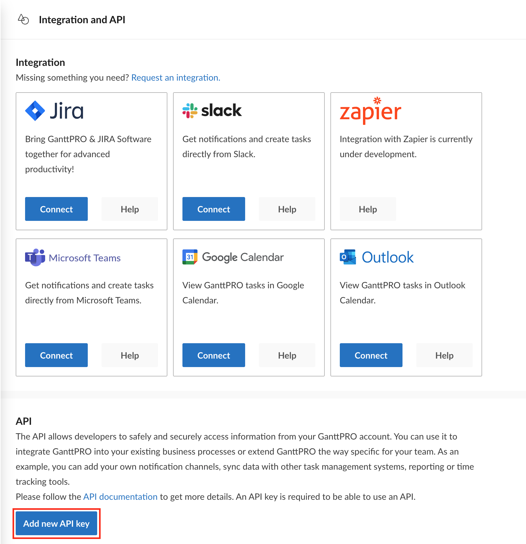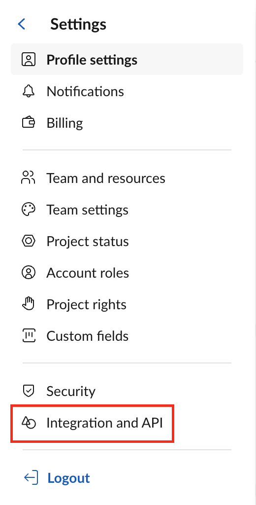 ログイン後、左側メニューの Settings > Integration and API をクリックします。