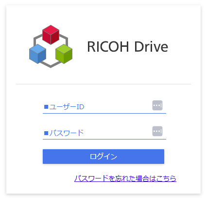 Ricoh Driveログインページにて、メールアドレス・パスワードを入力し、ログインします。
