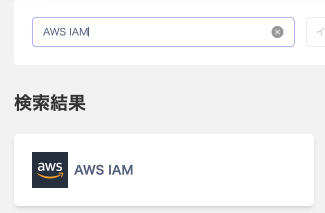 - マネーフォワード Adminaのインテグレーション画面にて、AWS IAMで検索します。