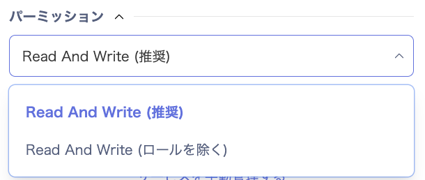 連携時にロールを取得しない場合は、[Read And Write(ロールを除く)]を選択します。