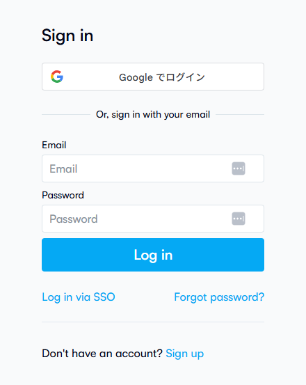 Perdooログインページにて、メールアドレス・パスワードを入力し、ログインします。
