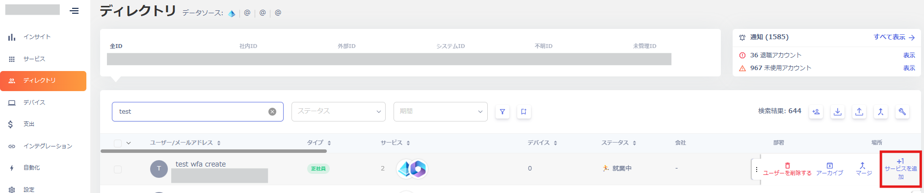 - 対応しているSaaSは連携可能SaaS一覧 の「Account Lifecycle/アカウントライフサイクル」の「Provisioning(新規・追加登録)」をご覧ください。対応するサービスは順次拡大します。