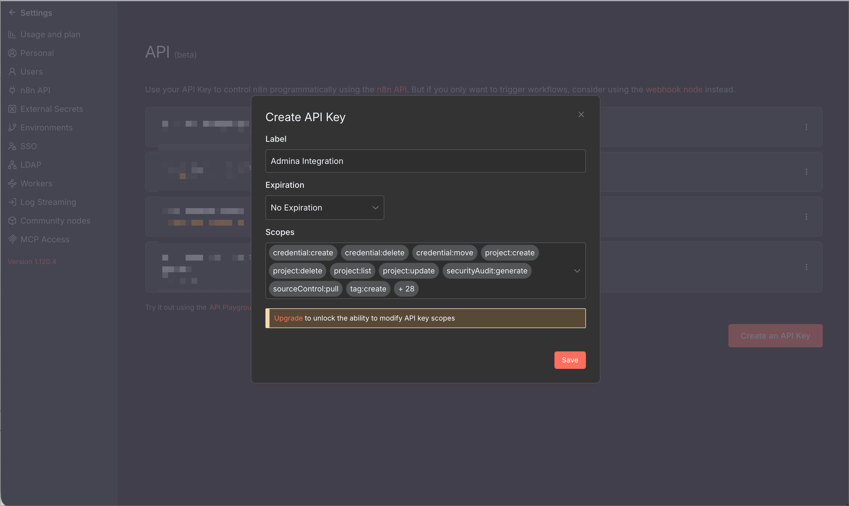 Saveをクリックし、作成されたAPIキーをコピーします。