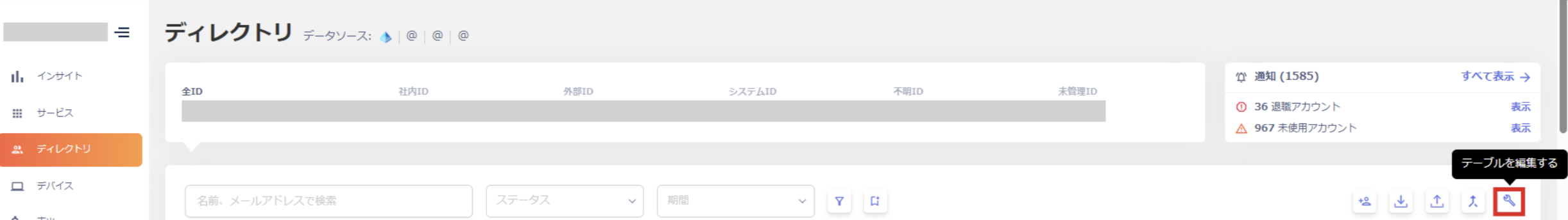 - ディレクトリ の右上の[🔧テーブルを編集する]をクリックします。