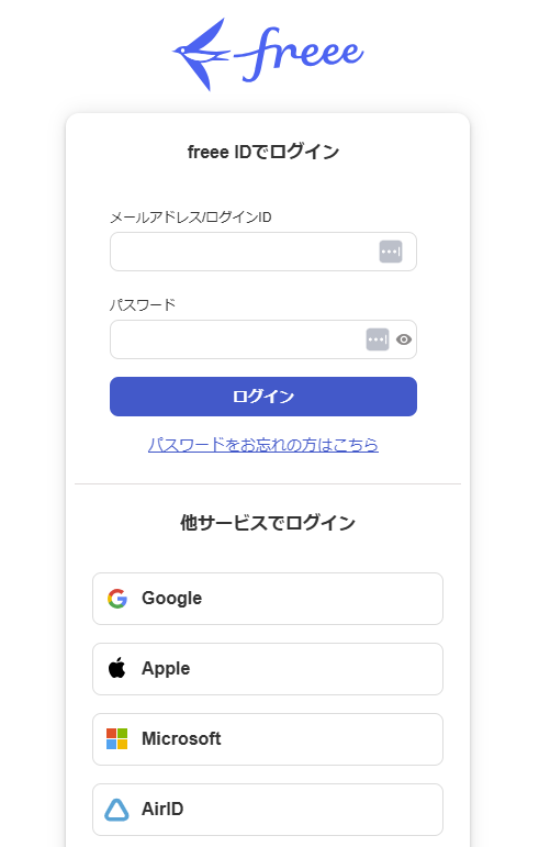 freee 販売 ログインページにて、メールアドレス・パスワードを入力し、ログインします。