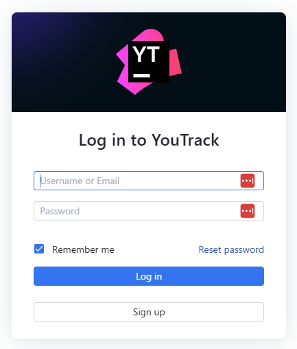 YouTrackログインページにて、メールアドレス・パスワードを入力し、ログインします。