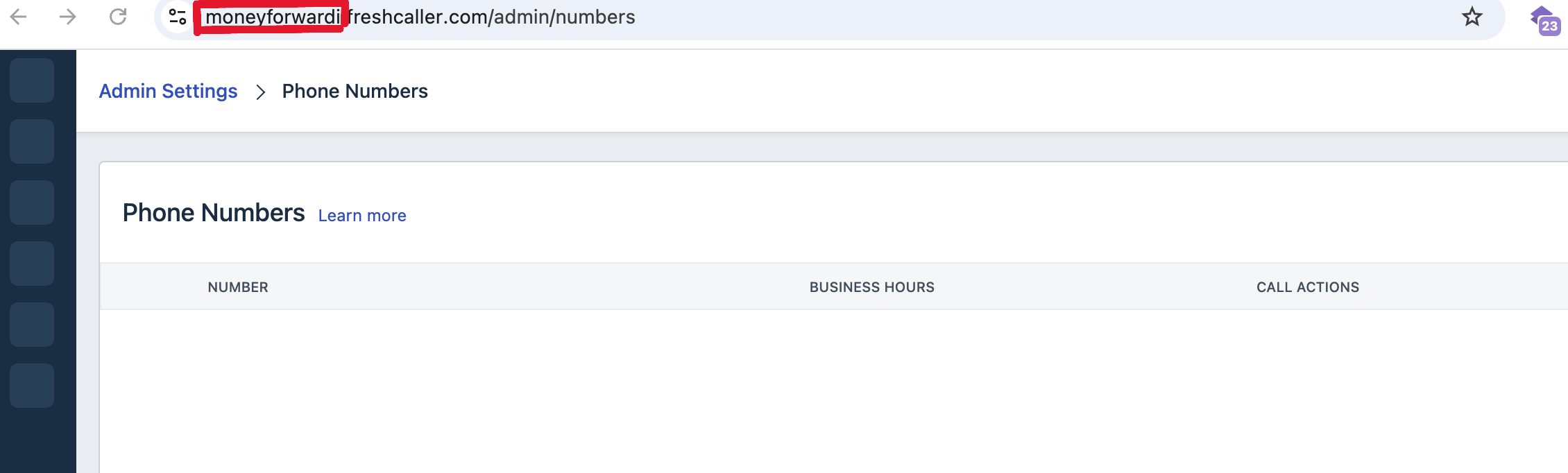 Freshcallerログイン後、URLを確認します。URLの一部がワークスペースキーとなります。