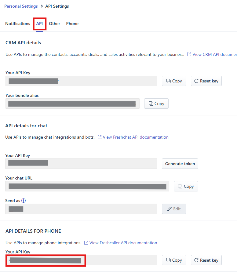 API > API DETAILS FOR PHONE の項目の Your API Key が使用するAPIキーです。