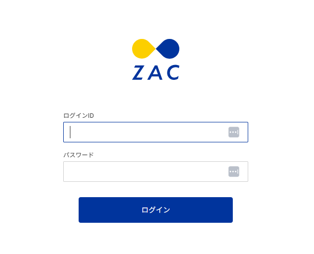 ZACログインページにて、メールアドレス・パスワードを入力し、ログインします。