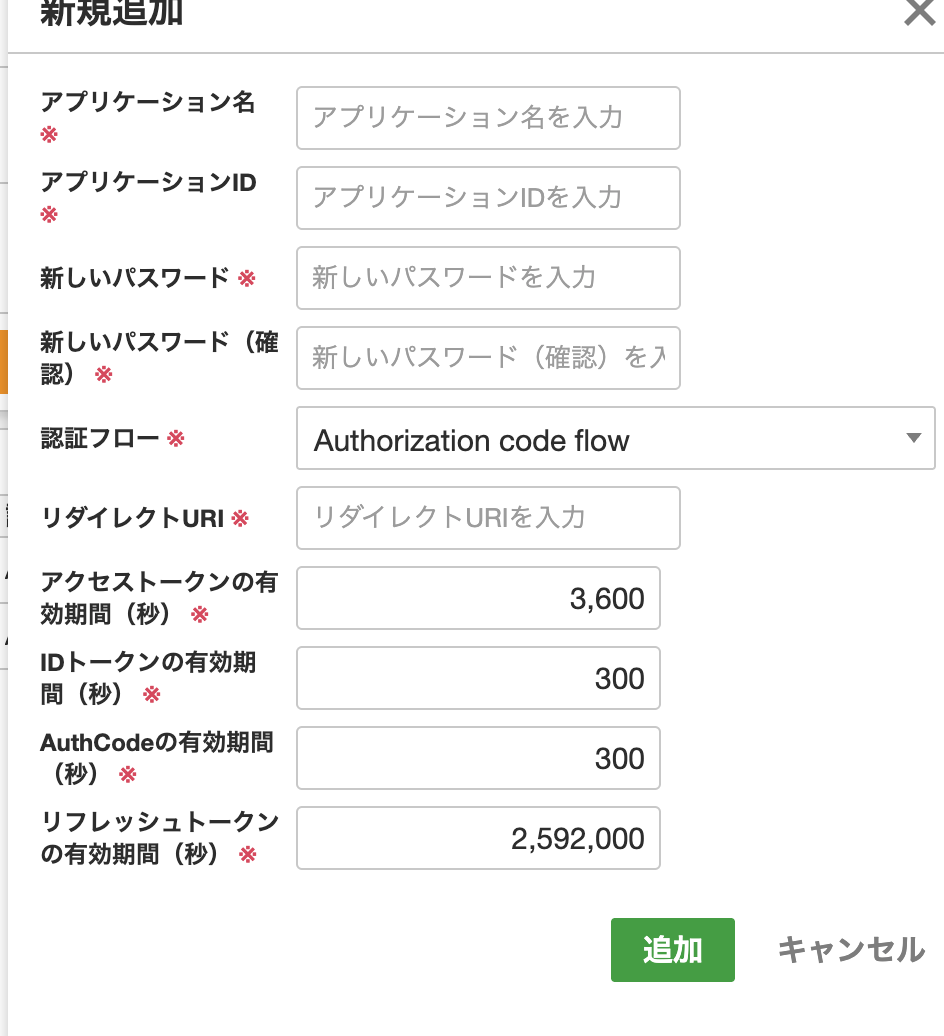 新規追加をクリックし、必要な情報を入力、追加をクリックします。