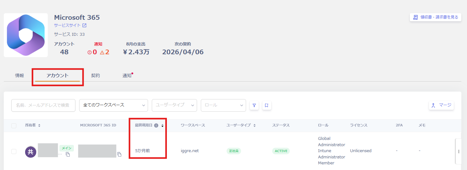 - アカウントの最終利用日(Last Activity)を確認する