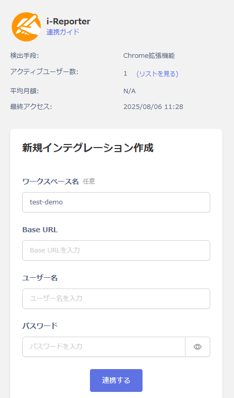 ログイン用ユーザー名・パスワードを入力し、連携するをクリックします。