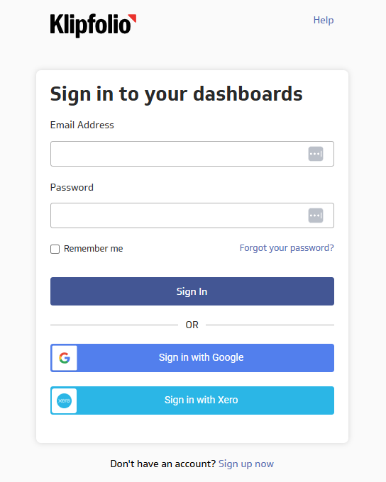 Klipfolioログインページにて、メールアドレス・パスワードを入力し、ログインします。