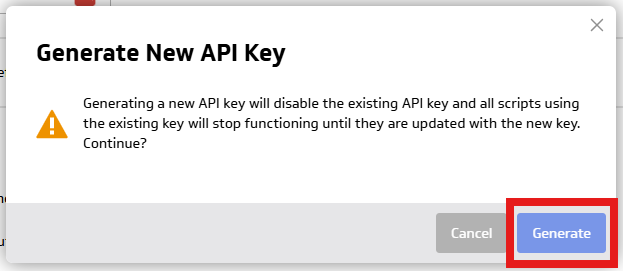 Generate をクリックし、作成されたAPIキーをコピーします。