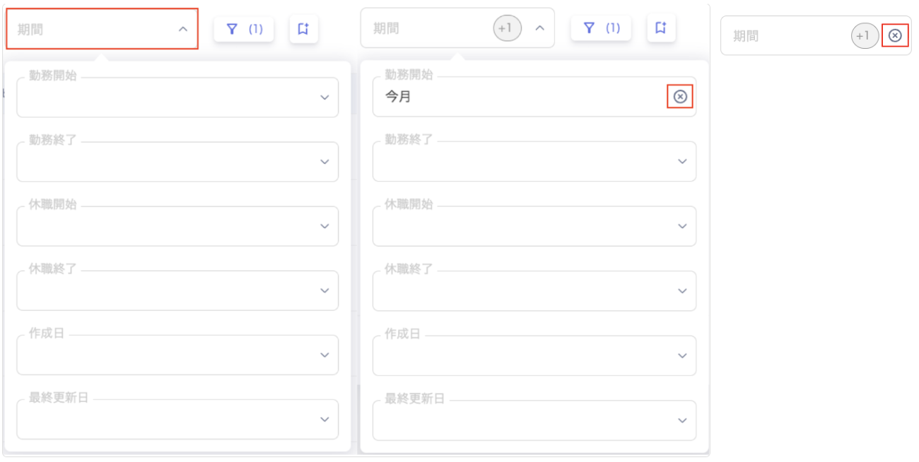 ディレクトリ一覧を各項目(カスタム属性も含みます)で絞り込めます。絞り込みを解除する場合は、右側の(×)で解除します。