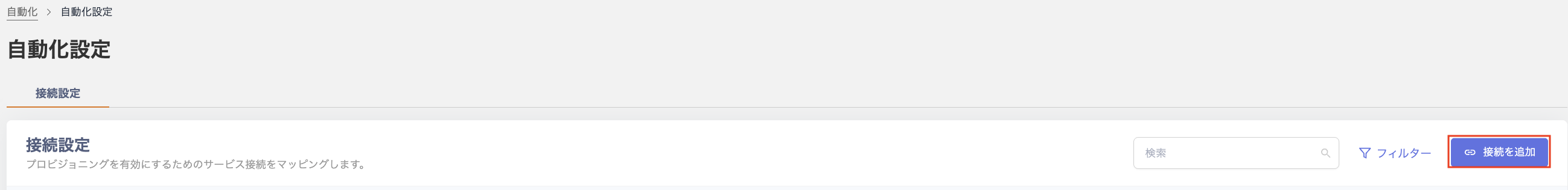 - 自動化>設定>接続設定の[接続を追加]をクリックします。