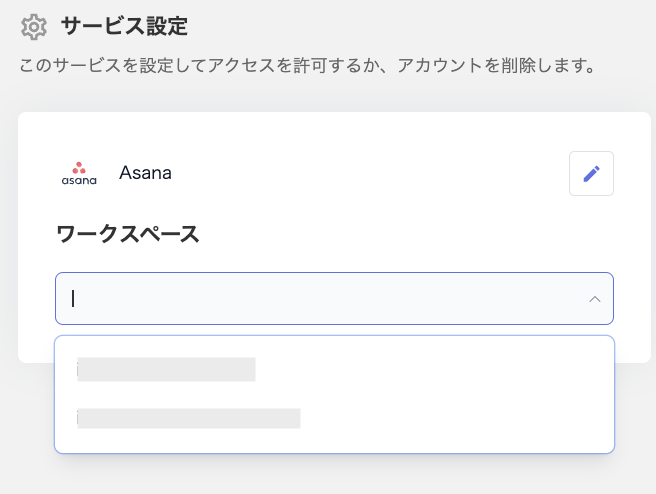 - 「サービス設定」画面でワークスペースを選択します。