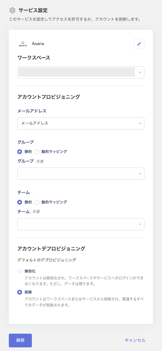 ワークフローを利用して、入社時・退社時のアカウント発行や削除(プロビジョニング・デプロビジョニング)を行うためには、あらかじめ連携サービスとの設定(マッピング)が必要です。