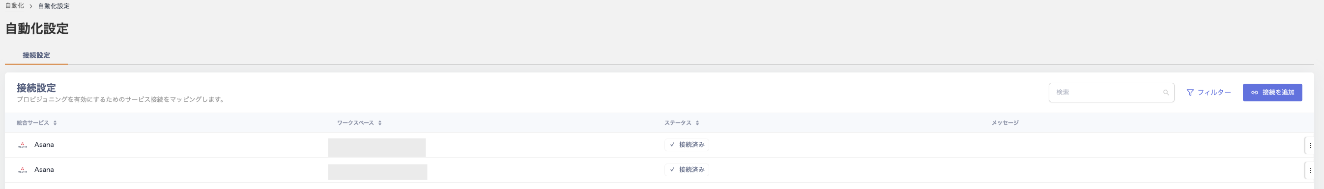 - 「自動化設定」画面の「接続設定」にマッピングしたサービスが表示されます。