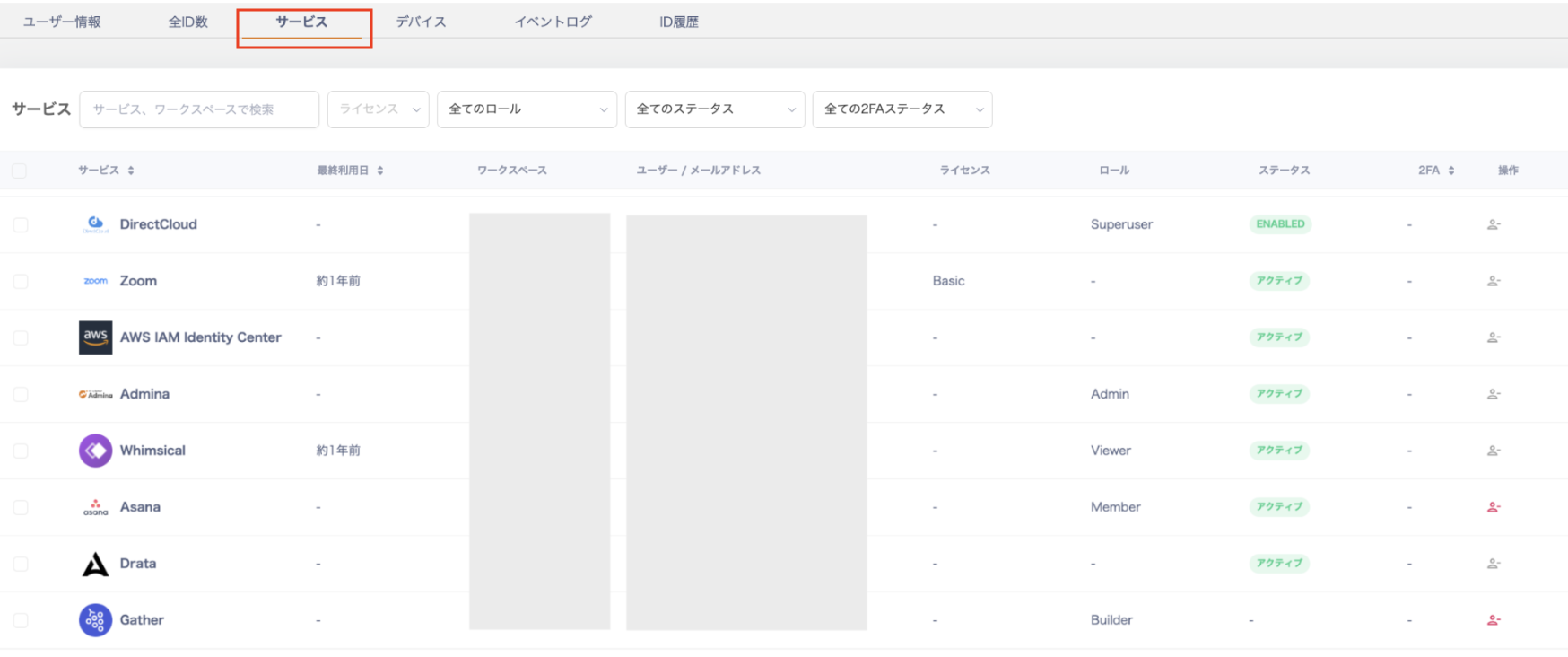 イベントログについてはイベントログでSaaSの利用状況を確認するもご参照ください。