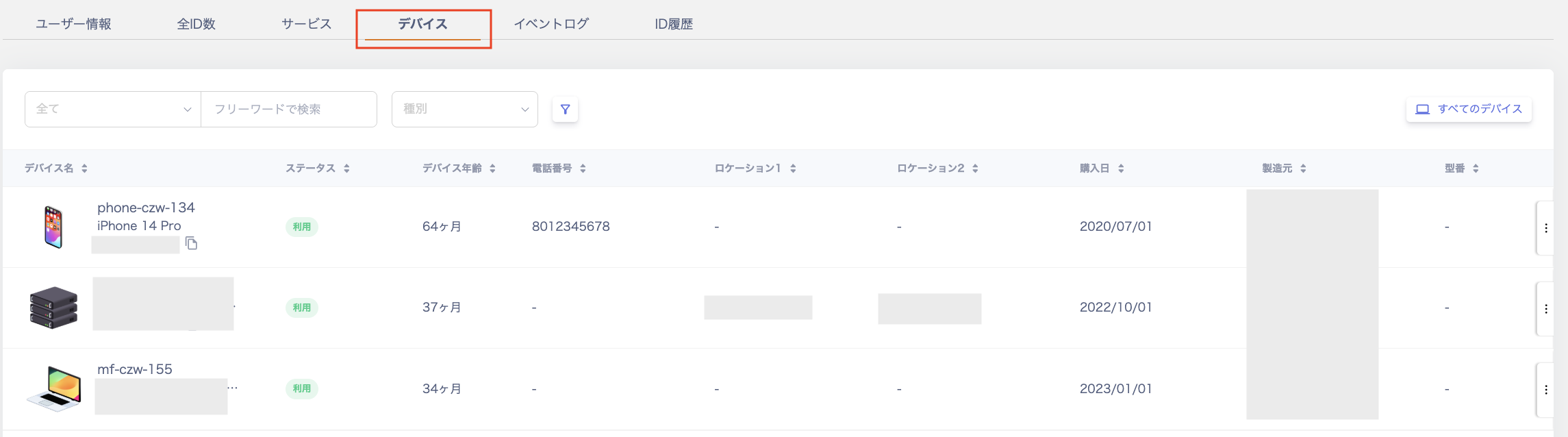 タイプ / ID種別 | 社内ID | 外部ID | システムID | 不明ID | 未管理ID |