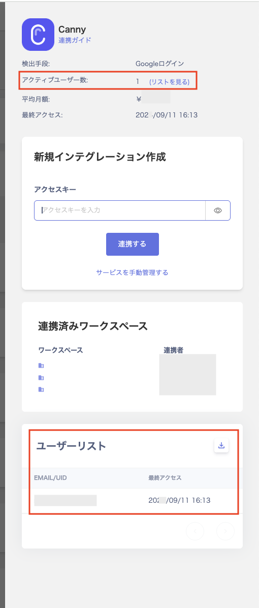- Last Accessed AT(UTC) : 直近の利用者のアクセス時刻をUTCで表示します。